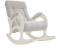 Мягкое кресло-качалка традиционной конструкции. Каркас и боковины изготовлены из прочной фанеры на высокотехнологичном оборудовании. Максимально допустимая нагрузка - 100 кг. Оригинальная форма боковин придает креслу легкость и изящество. Эргономичные сиденье и спинка, мягкий подголовник, оптимальный угол наклона и диапазон качания позволяют провести время в кресле-качалке с максимальным комфортом. Обивка кресла – ткань различных расцветок легко поддается чистке, что делает уход за креслом необременительным. Разнообразие обивок позволяет выбрать то кресло-качалку, которое дополнит и украсит любой интерьер.