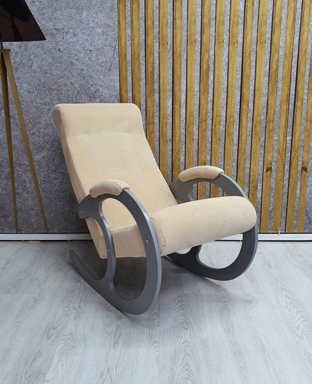 Кресло-качалка Неаполь Модель 3 (Серый ясень-эмаль/Ткань Ваниль Verona Vanilla)