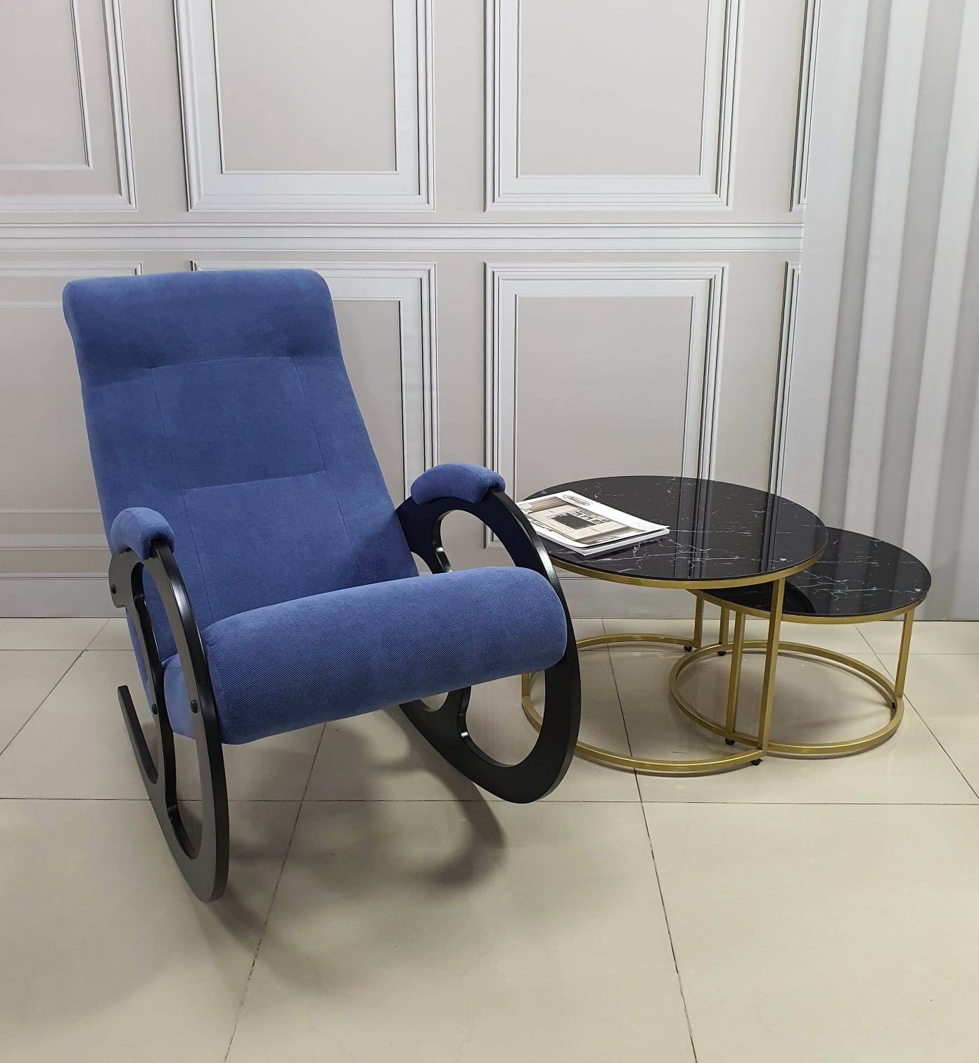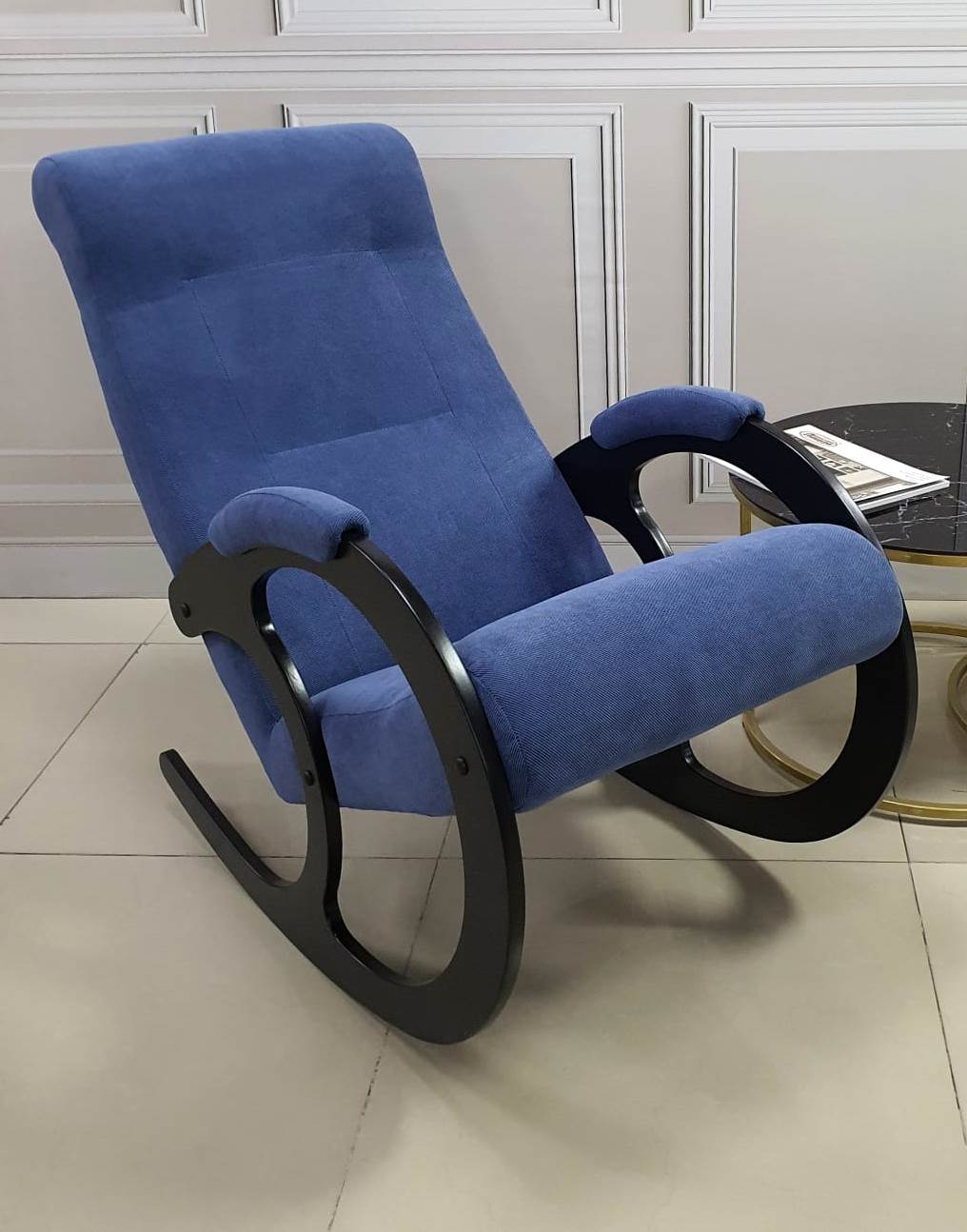 Кресло-качалка Неаполь Модель 3 (Венге-эмаль/Ткань Синий Denim blue)